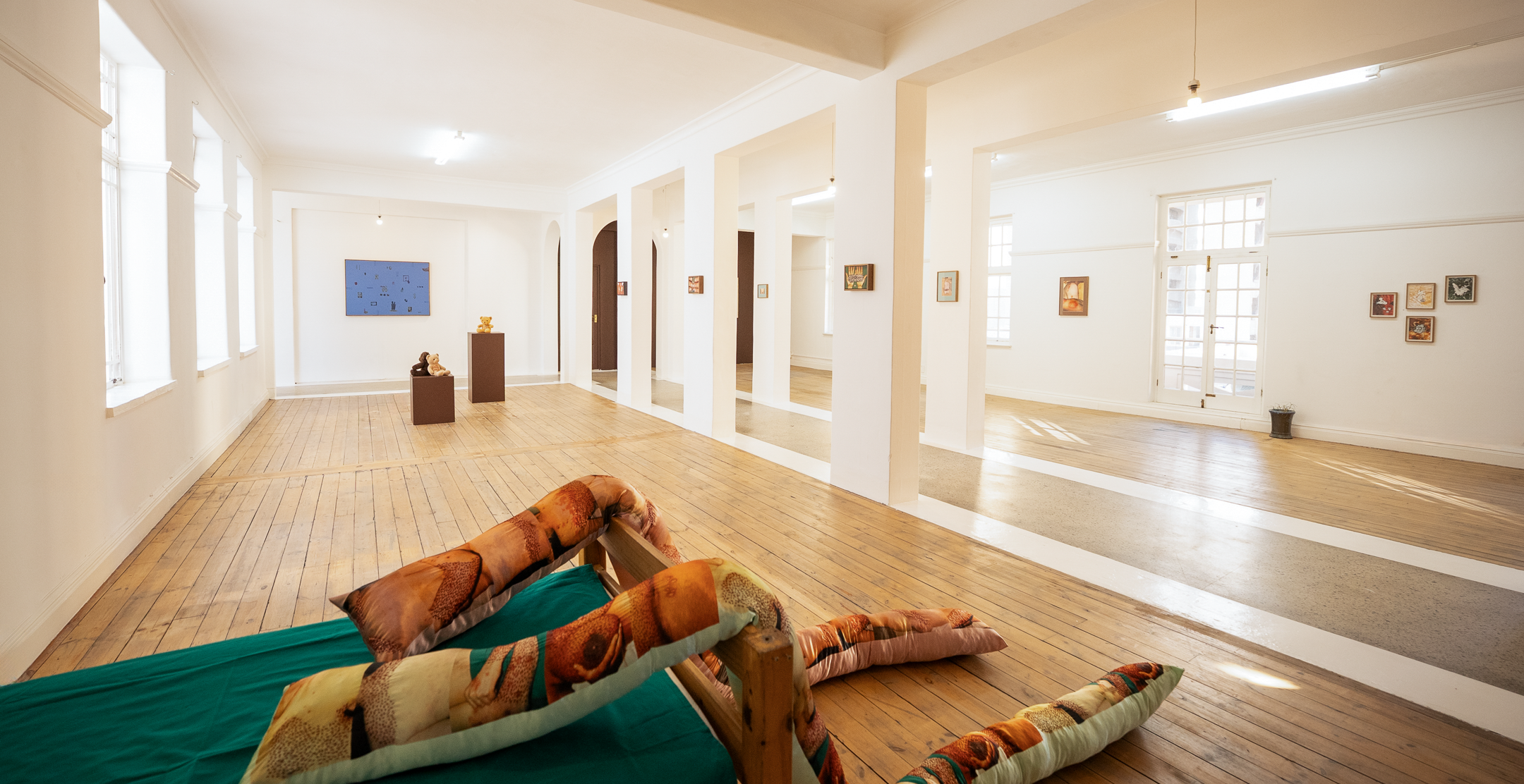 A broad mythological spectrum has informed their mode of world-building. Hybrid figures of Greek myths; winged-lions, two-headed dogs, and minotaurs, speak to notions of amalgamation, inhabitations of otherness, and challenge preconceived dichotomies of beauty and monstrosity. These references to archaic European iconographies with a ghostly character intersect with forms, figures, and animals that are ostensibly present. Portrayals of loved ones, local flora, and indigenous birds, reveal a different kind of mysticism, and locate the work within the here and now. The resulting confluence of matter constructs a space of hope and absurdity, in which monstrous sculptures and real-life creatures converse, and construct new realities.