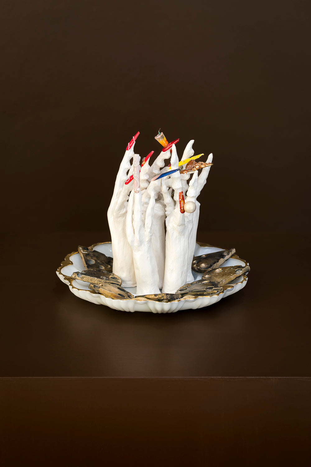 Ceramics and Acrylic Nails. 16 x 16 x 10 cm.