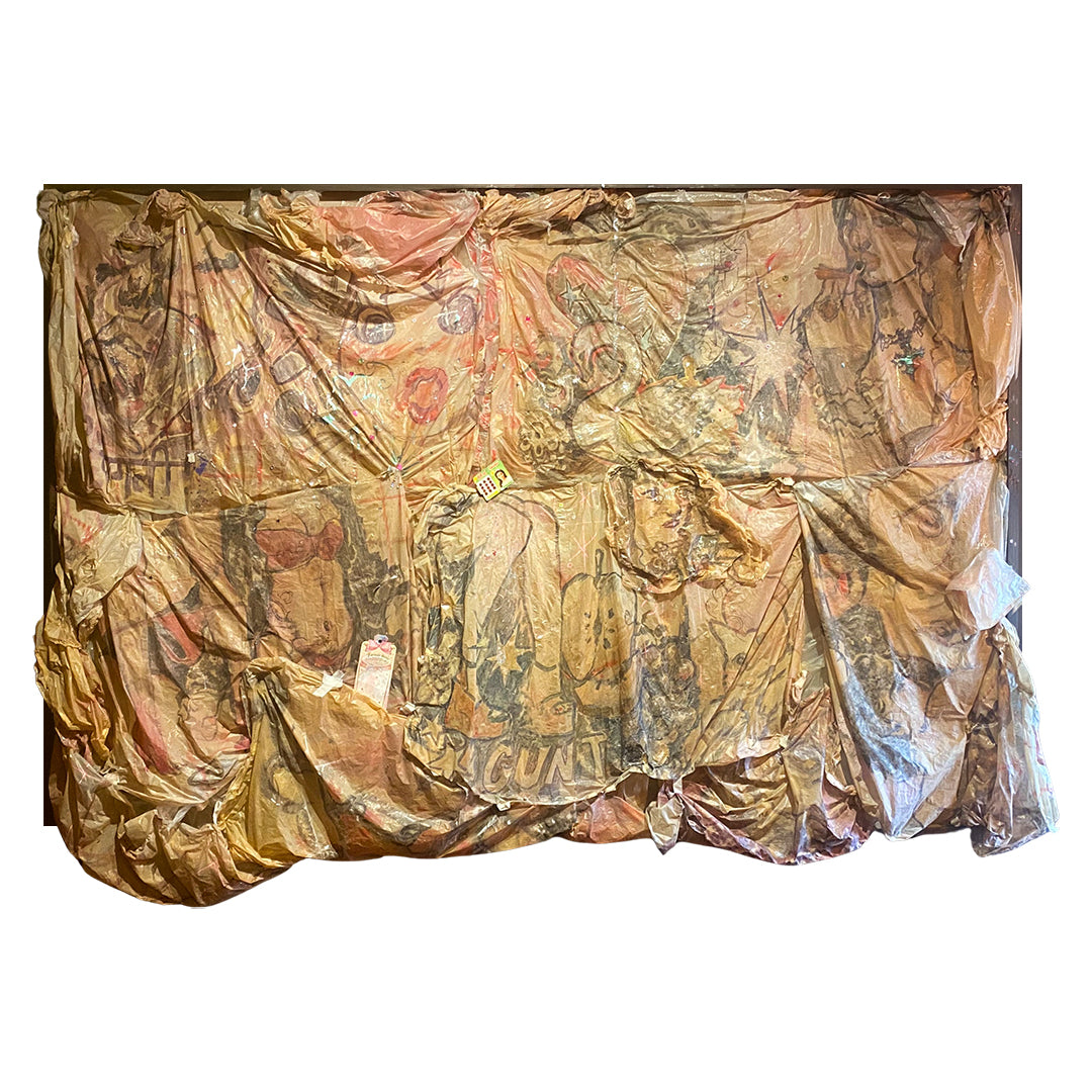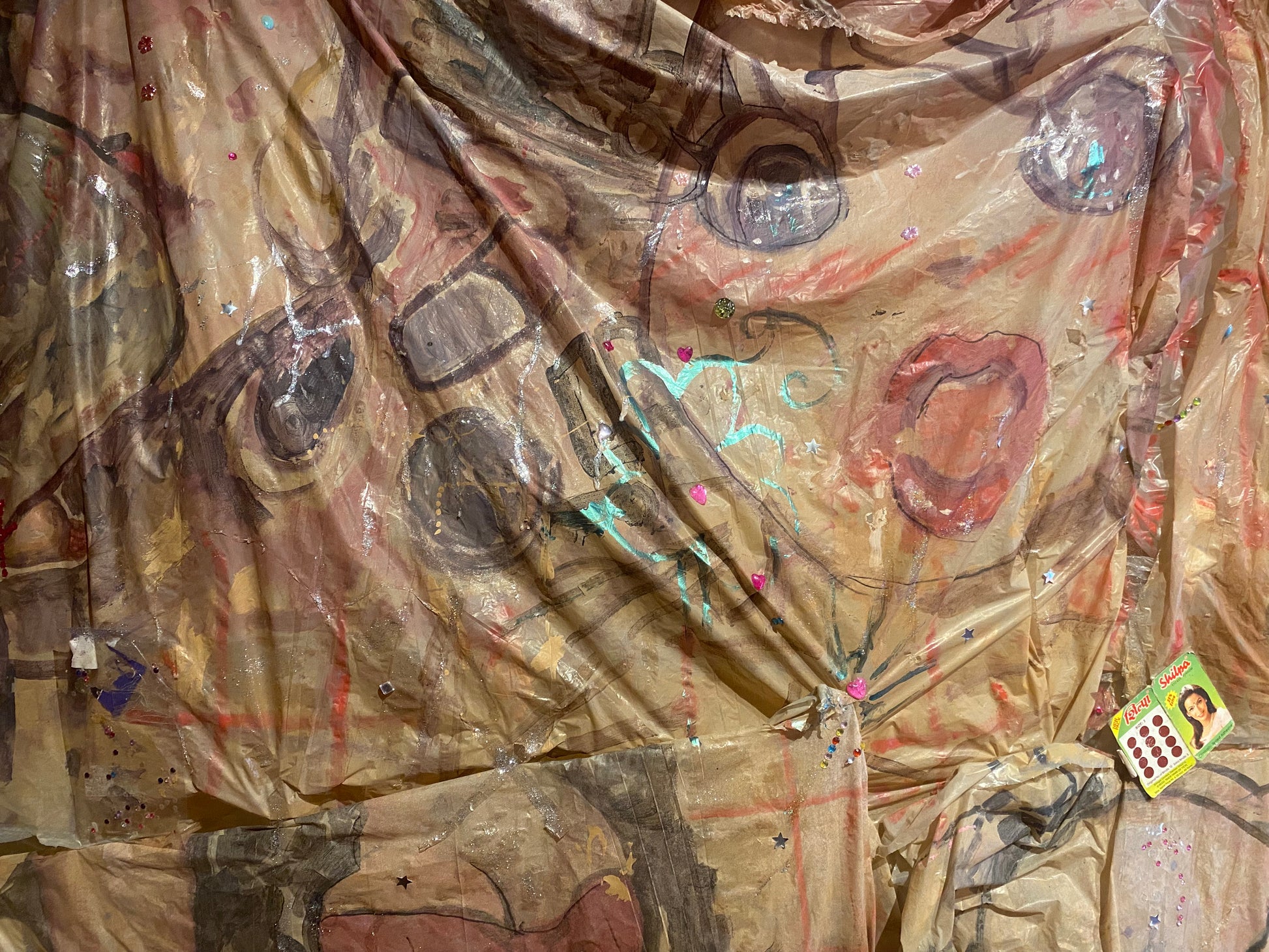 Lipstick, blush, kohl and nail polish on plastic. 270 x 180 cm.