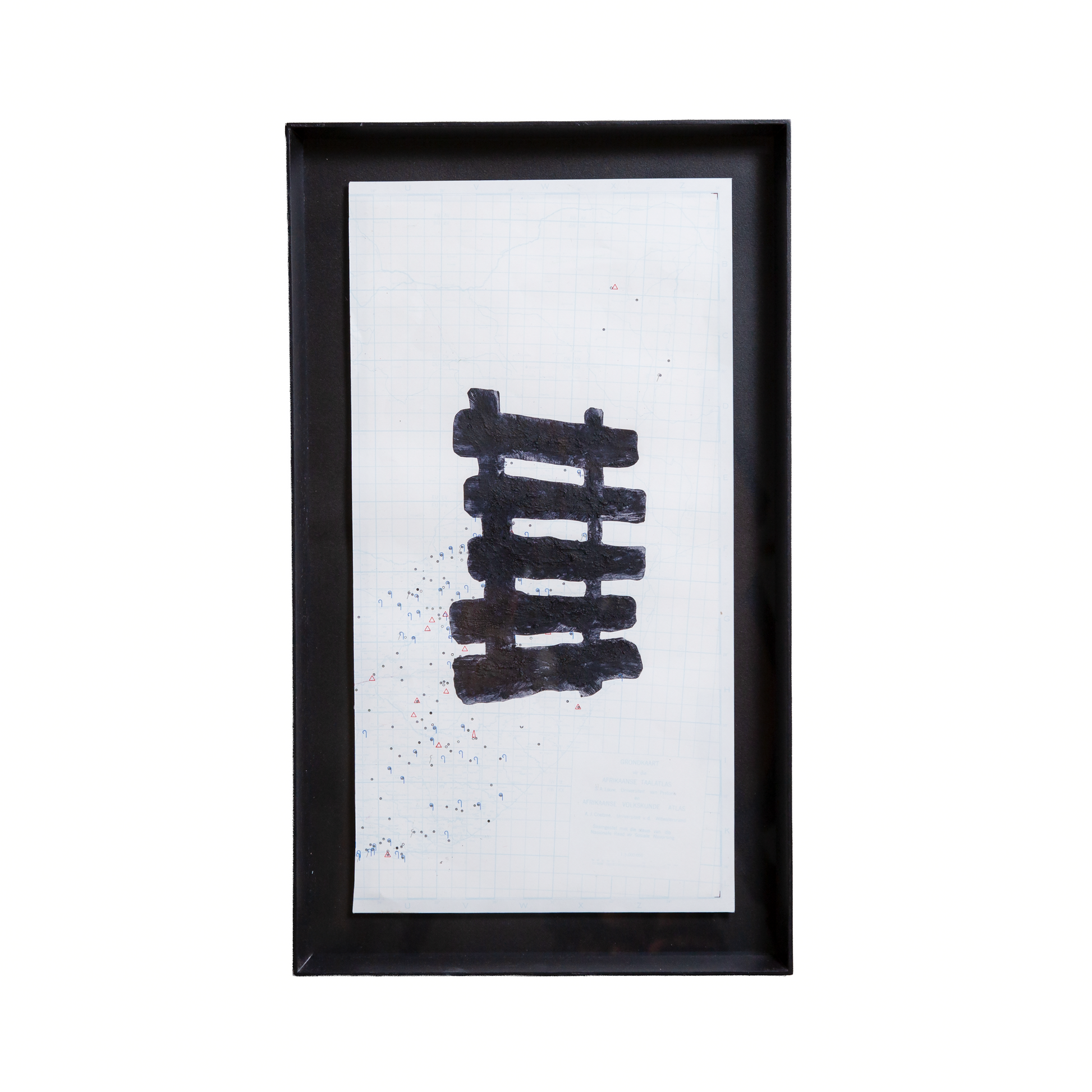 Shoe polish on found paper. 31 x 53 cm. Framed.