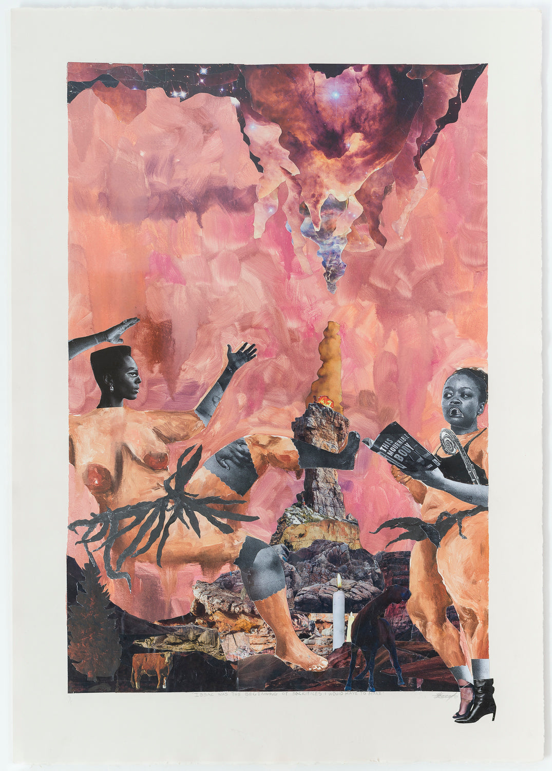 Oil-based mono print and collage on Fabriano. 49.5 x 70.5 cm. Framed.