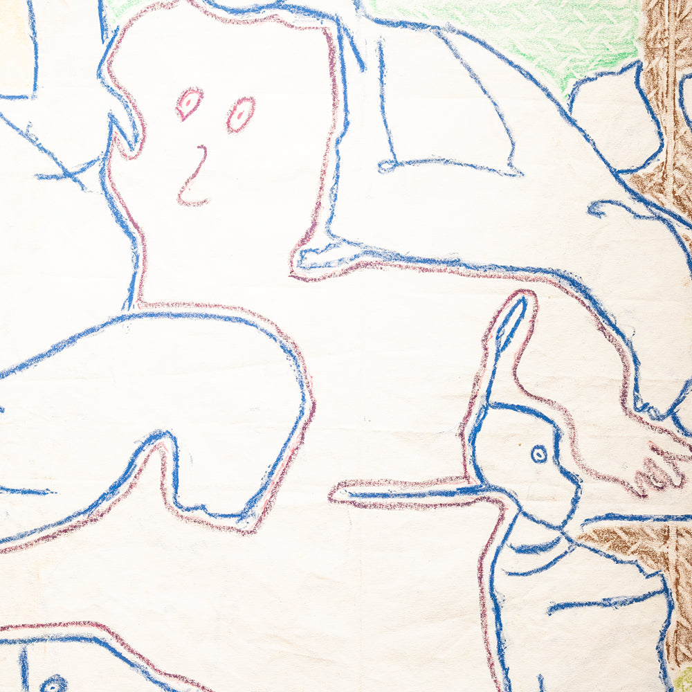 Pastel and oil stick on canvas curtain. 177 x 192 cm.