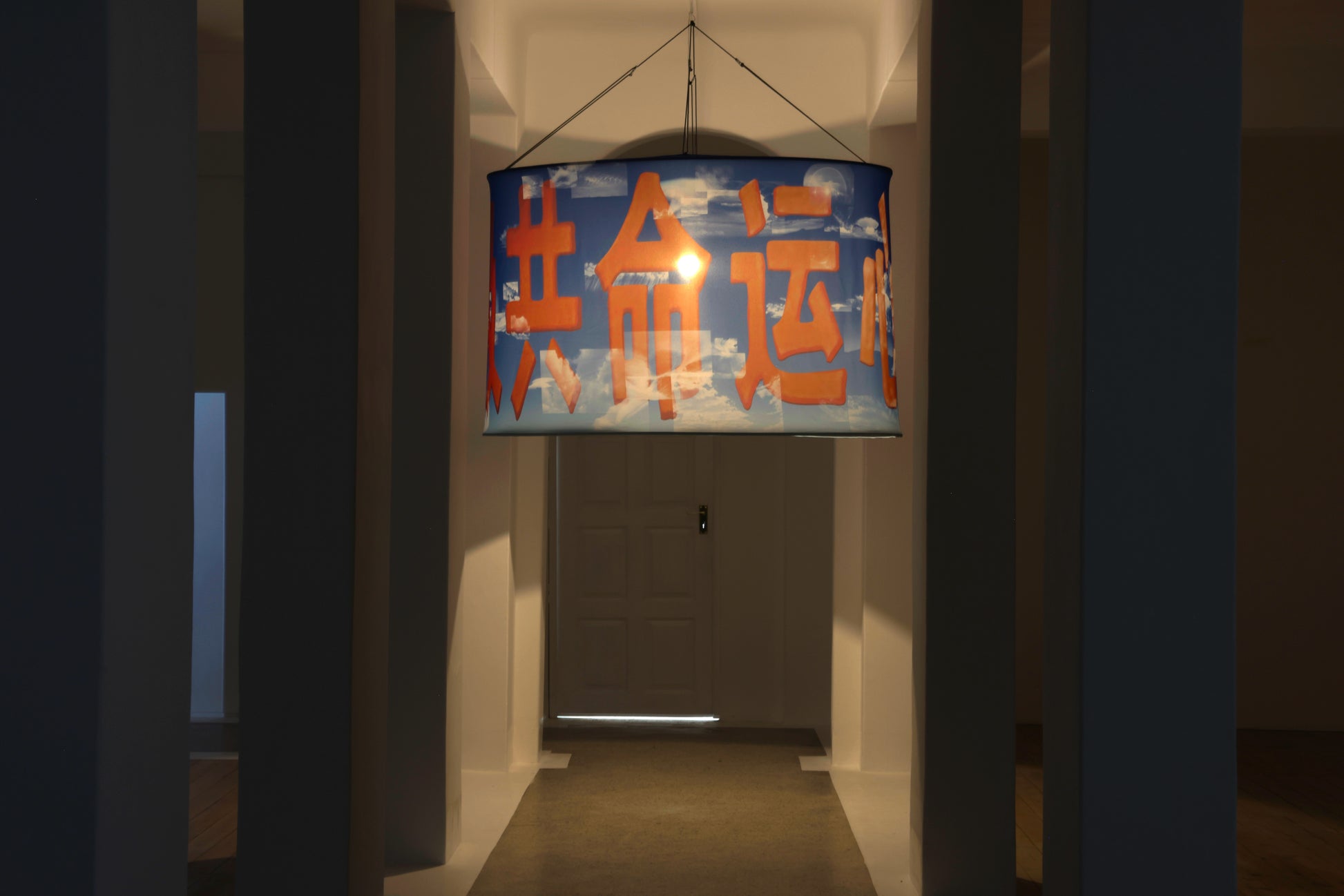 Cylindrical structure with dye sublimation print on fabric. (H) 100 x (⌀) 150 cm.