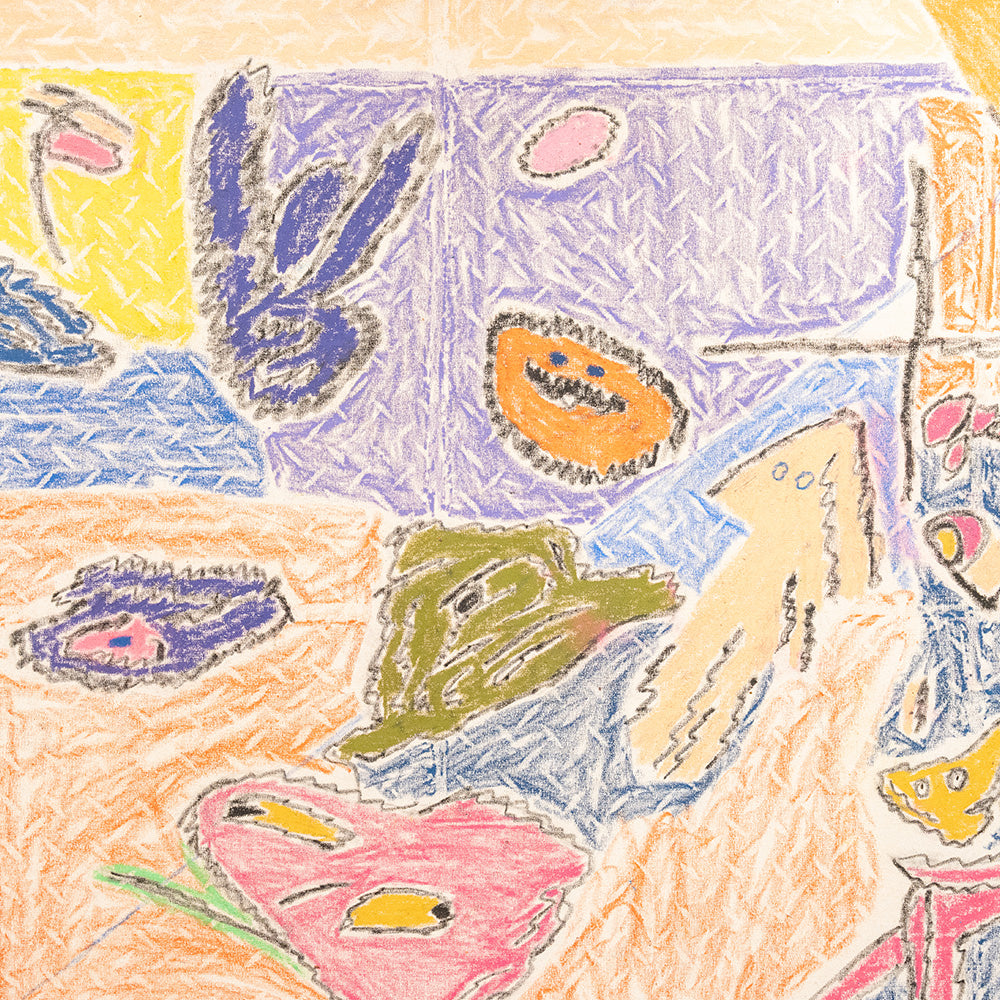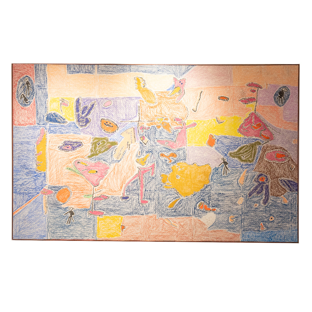 Pastel and oil stick on canvas. 282 x 177 cm. Framed.