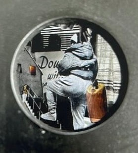 Collage in black light box. 33 x 29.5 x 21 cm.