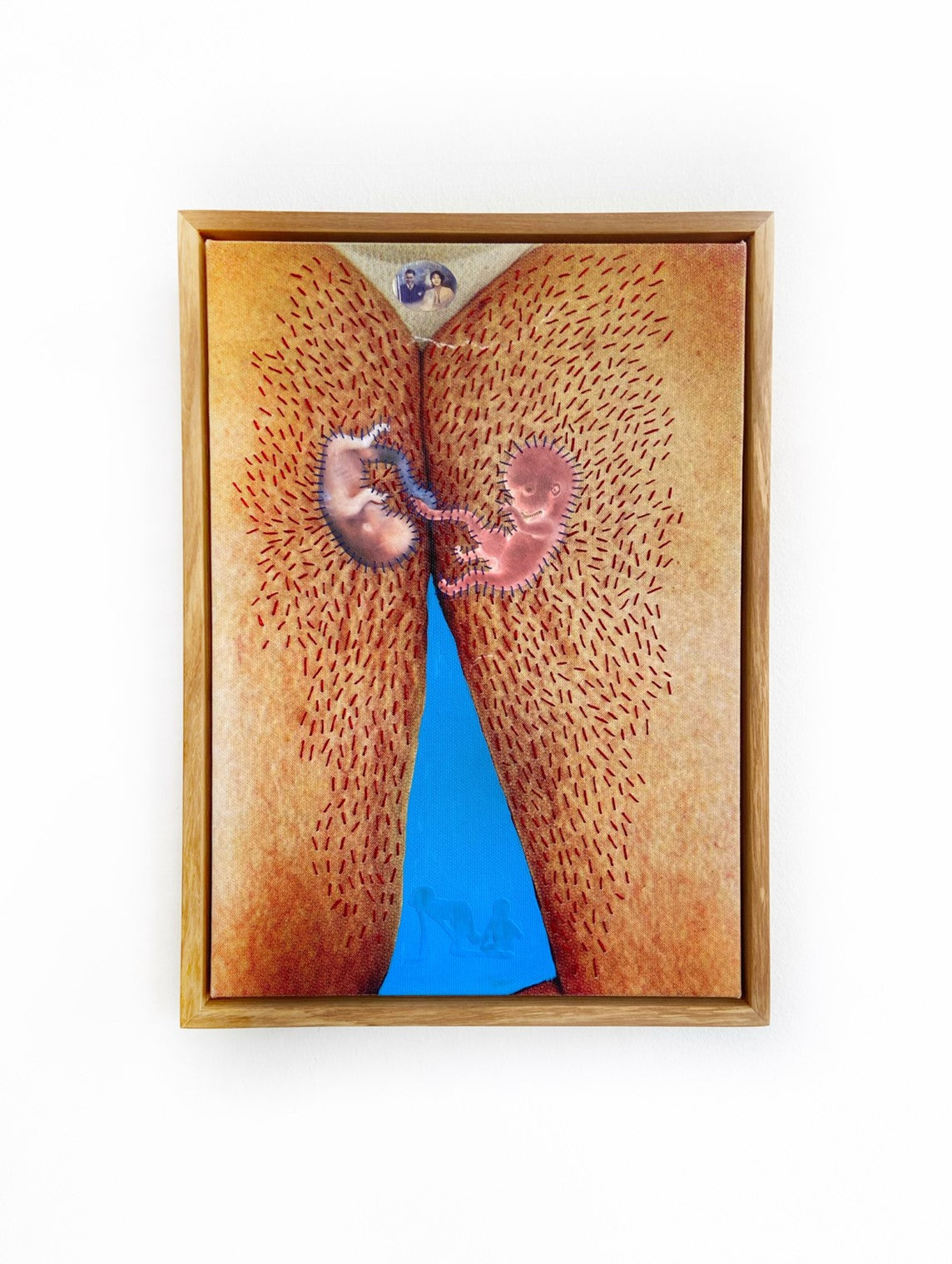 Collage, Acrylic and Thread on printed canvas. 21.2 x 29.9 cm.